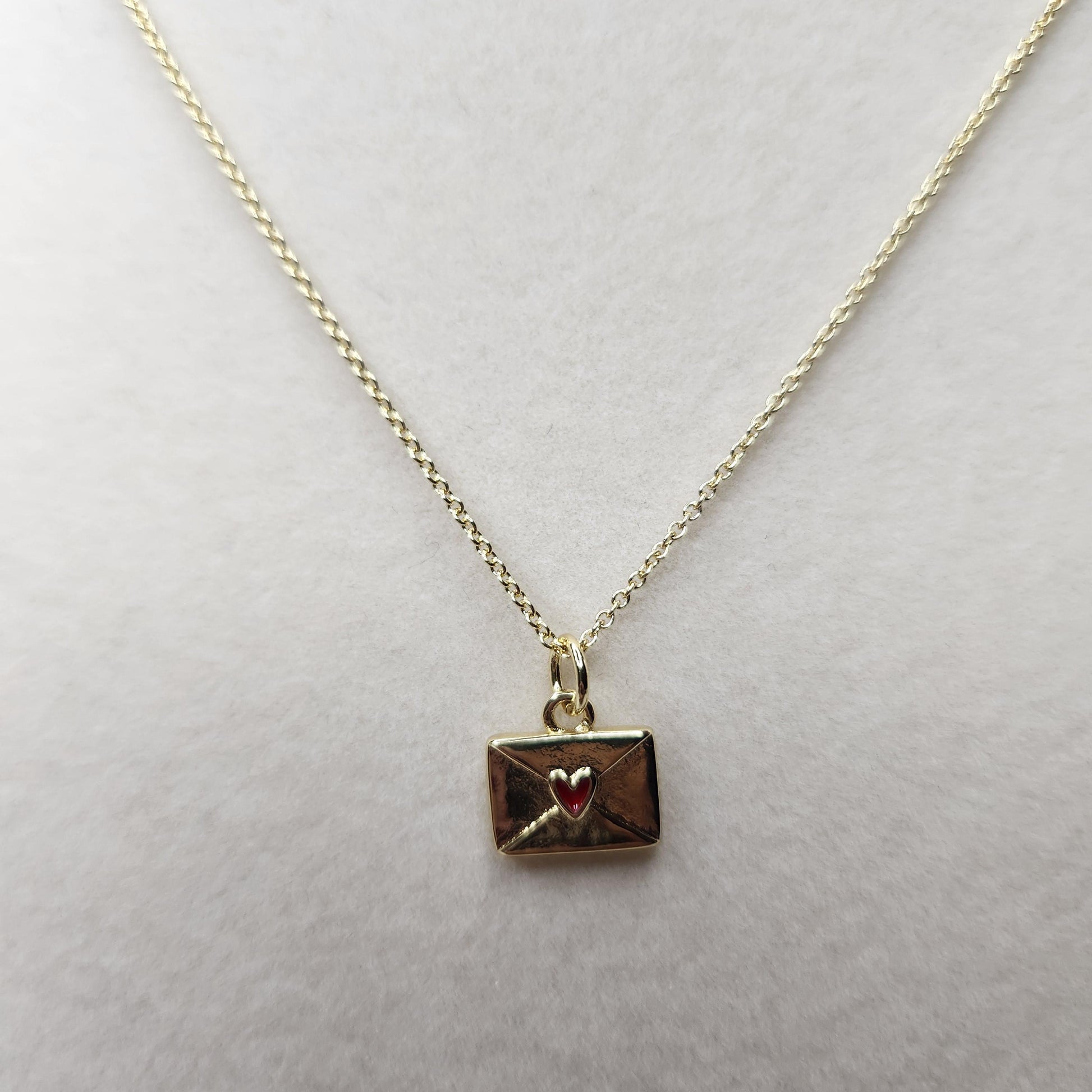 Handmade 18k gold plated envelope heart dainty necklace perfect for mothers day