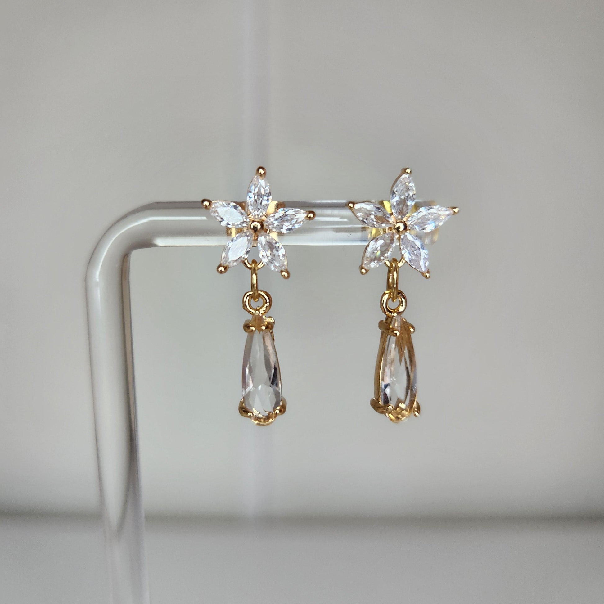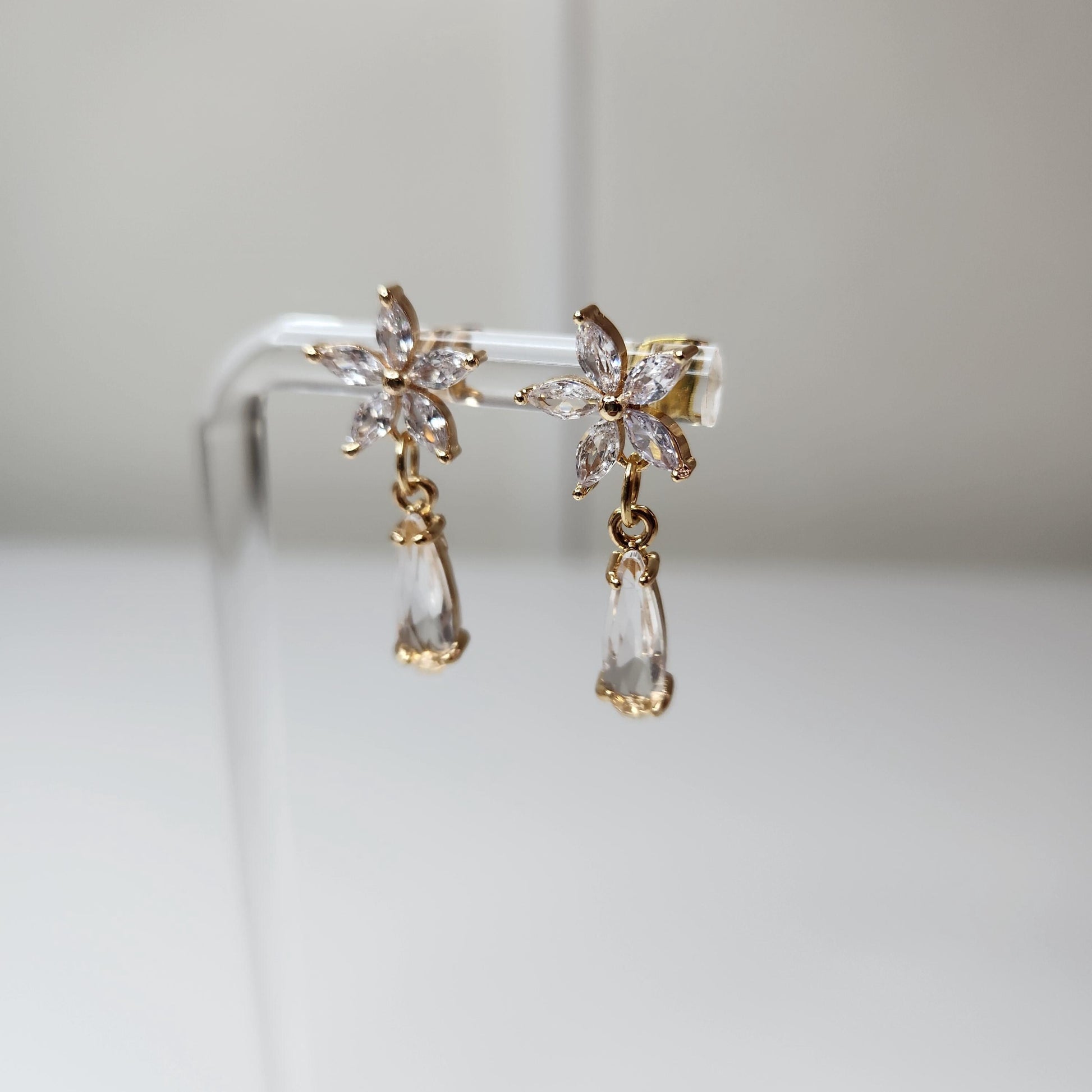 HANDMADE 18k gold plated floral dangle earring, mothers day gift ideas