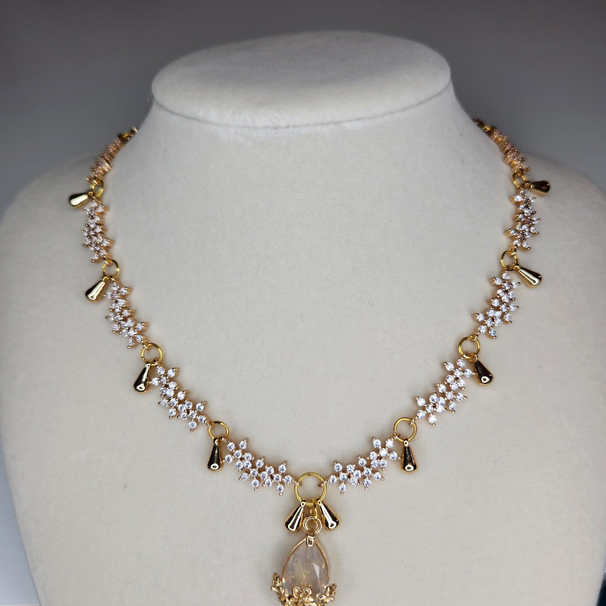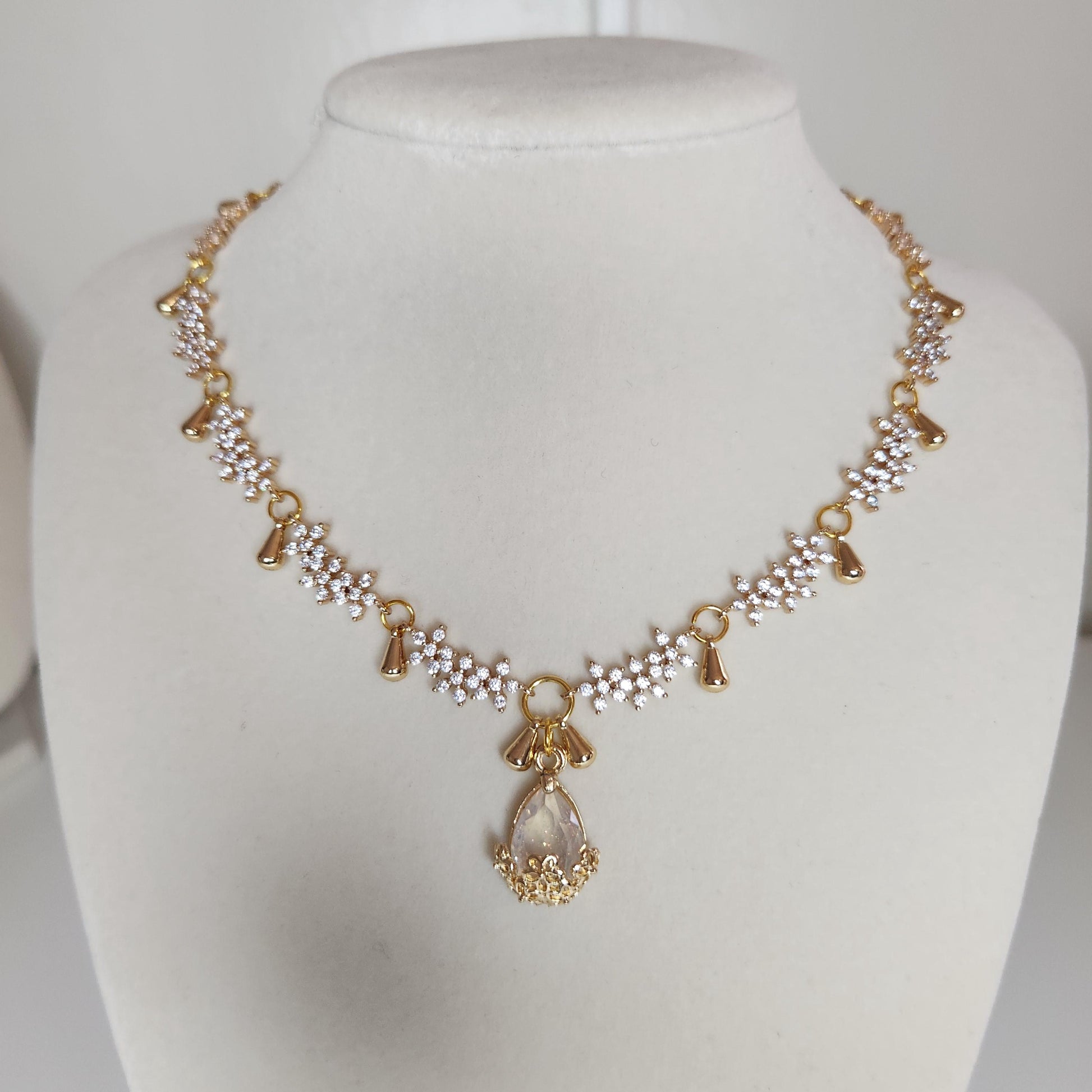 Handmade Crystal Floral Necklace, Dainty Teardrop Pendant