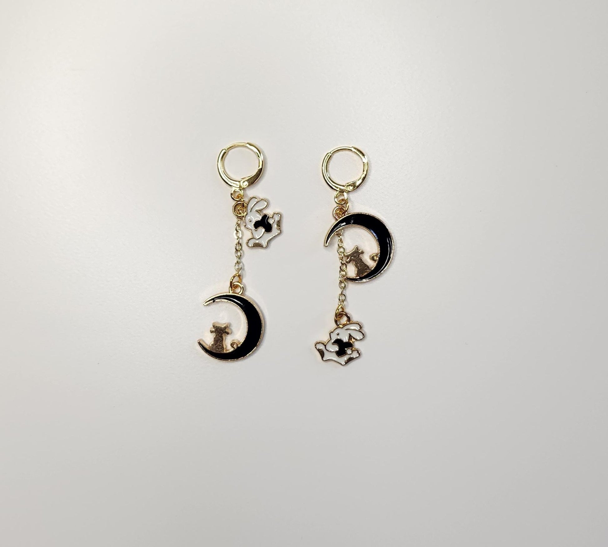 Inspired from Sailor Moon, this huggie hoop dangle earring is tarnish free and gold plated and handmade.