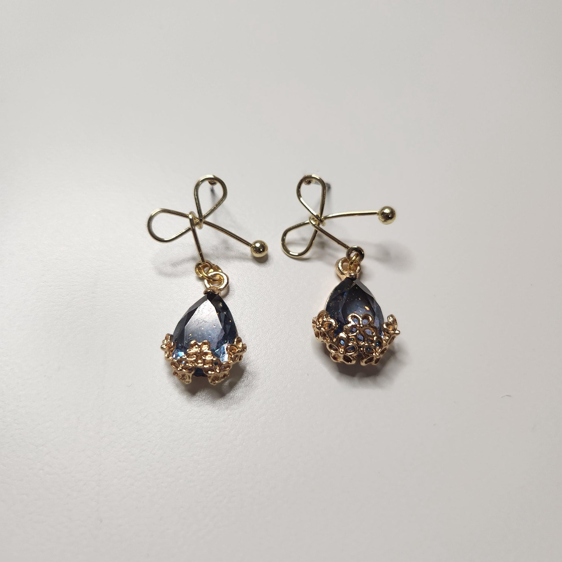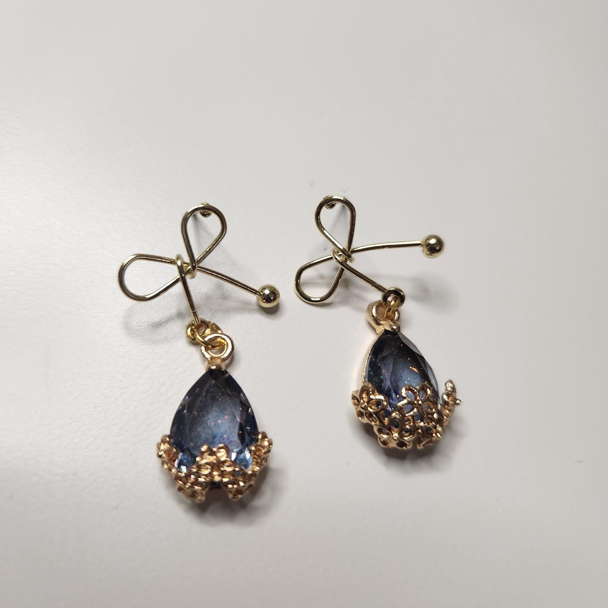 HANDMADE tarnish free gold plated bow earrings with crystal teardrop